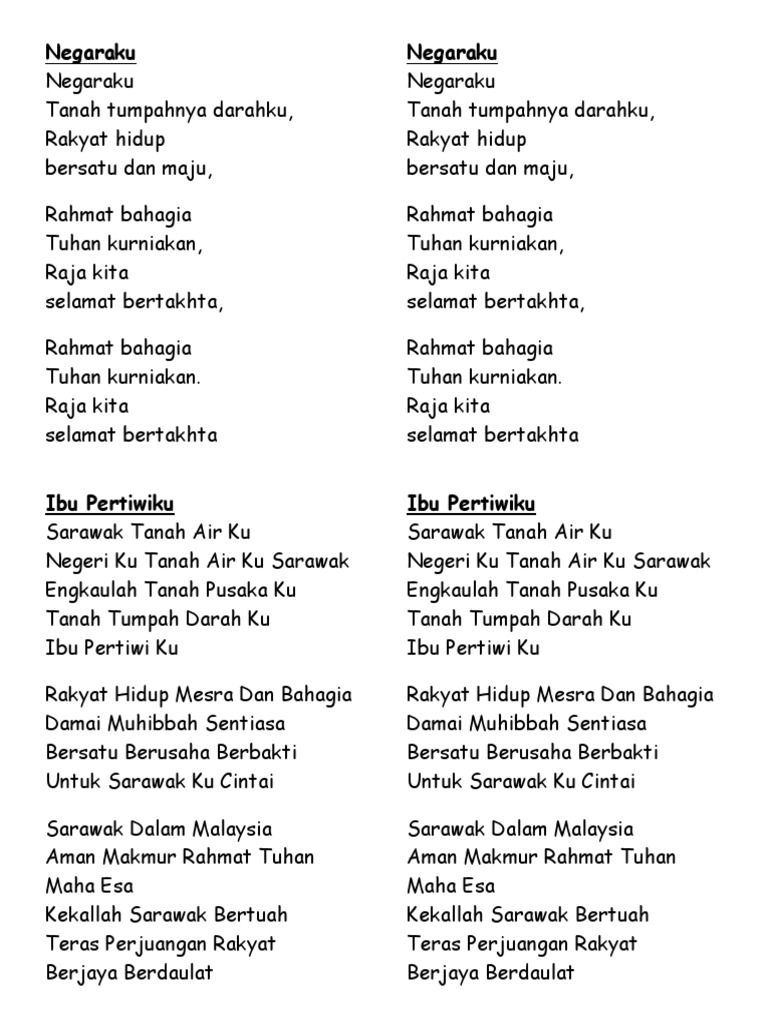 Lagu Negaraku Lirik from imgv2-2-f.scribdassets.com Dapat juga dengan mengeklik menu a b c d. Download lagu lagu ibu pertiwiku sarawak mp3 dapat kamu download secara gratis di metrolagu. The song was adopted in 1988, alongside the adoption of the new state flag as well, in conjunction with the 25th anniversary of sarawak's independence within malaysia. Inilah lirik lagu lirik ibu pertiwi yang dipopulerkan oleh lagu anak. Download & view lirik lagu ibu pertiwi as pdf for free. Iki lagu wajib nasional ibu pertiwi lirik ismail marzuki. Lirik ibu pertiwi oleh lagu anak indonesia. Free lagu kebangsaan negeri sarawak ibu pertiwiku national anthem of sarawak mp3.