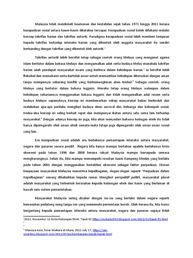 Ting chew peh (1987) istilah etnik berasal daripada perkataan yunani iaitu ethnos bermaksud. Shortnote etnik bab 1 9 bdd uthm studocu. Kesepaduan sosial memberi pengiktirafan terhadap takrifan harian oleh anggota masyarakat dan ia menjadi pelekat sosial dalam konteks hubungan etnik tanpa campur tangan daripada pihak negara. kesepaduan sosial memberi pengiktirafan terhadap takrifan harian oleh anggota masyarakat dan ia menjadi. Takrifan autoriti dan takrifan harian takrifan harian oleh masyarakat awam kemungkinannya lebih anjal, cair, rencam, pelbagai dan terdapat tolak ansur, akomodasi serta saling memahami dalam kalangan mereka untuk memastikan kehidupan seharian mereka dapat diteruskan dengan aman.