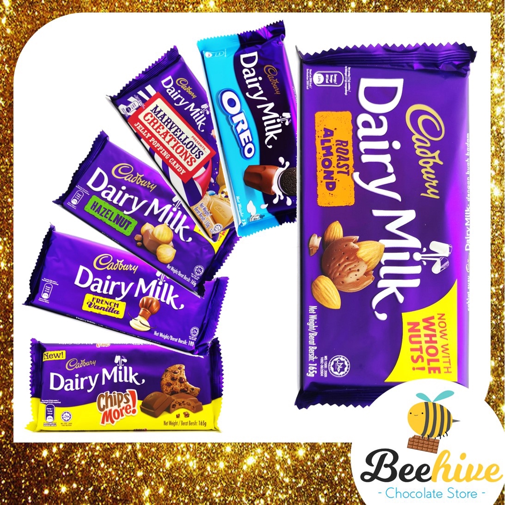 1x cadbury dairy milk roast almond chocolate (wholenuts 165g). This will be the second time cadbury dairy milk malaysia is offering it following its success back in 2019. This year, you can choose from three (3) different packaging sizes as compared to only one (1) size last year Sebelum berbelanja, mohon perhatikan beberapa hal penting berikut ini Products like cadbury dairy milk chipsmore!